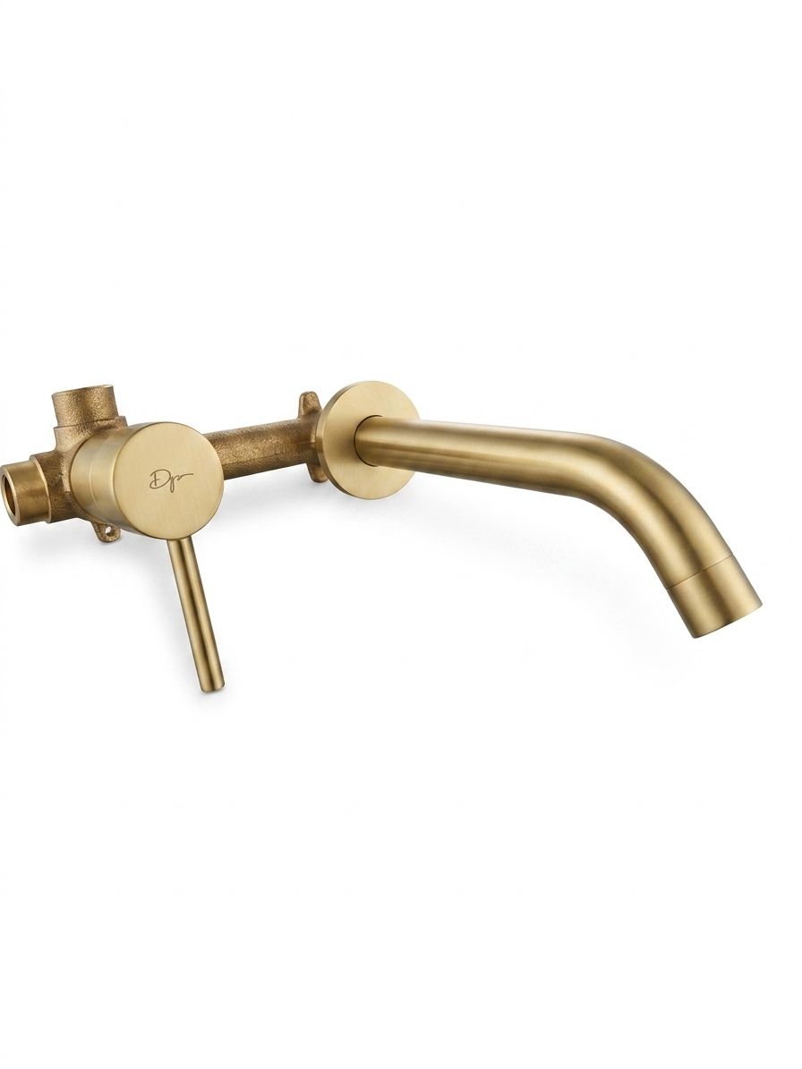 Esta grifería de pared en acabado dorado cepillado es la elección ideal para quienes buscan un equilibrio entre lujo sutil y diseño contemporáneo. Su estética refinada, con líneas limpias y acabado satinado, aporta calidez y sofisticación a cualquier espacio de baño.