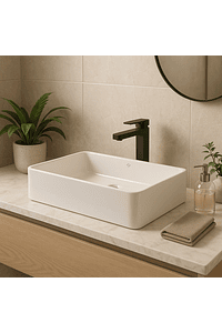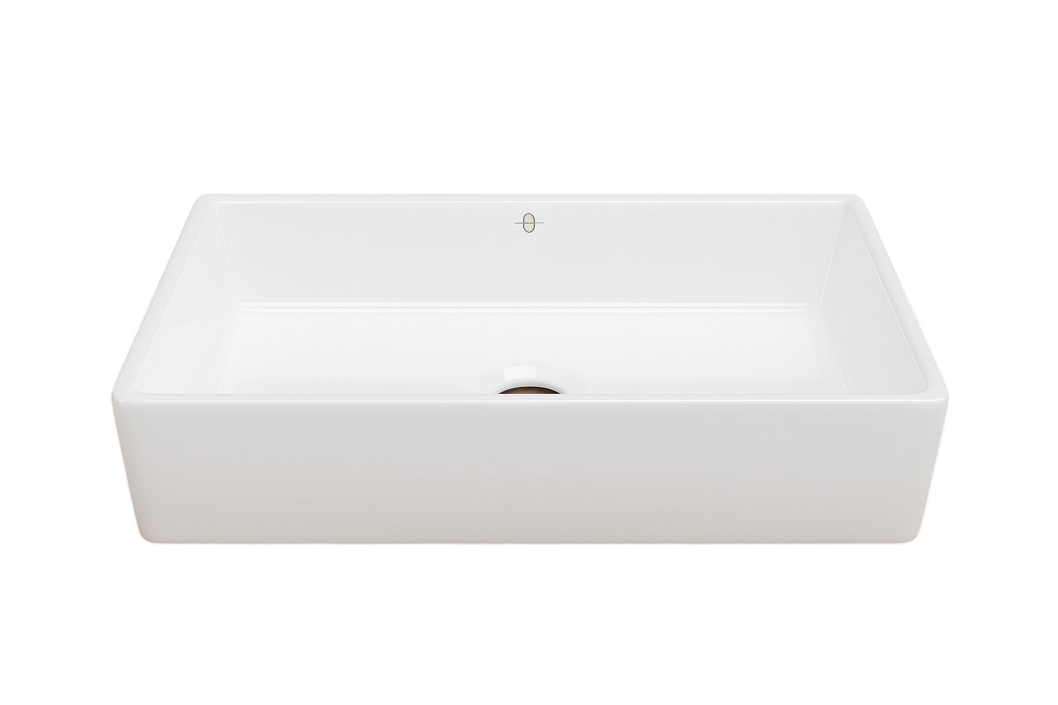 Lavamanos de sobreponer completamente en porcelana vitrificada.